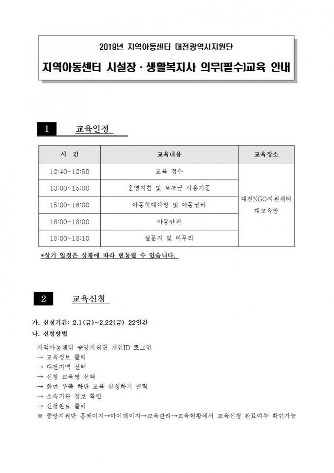 [] 2018년 지역아동센터 시설장 및 생활복지사…