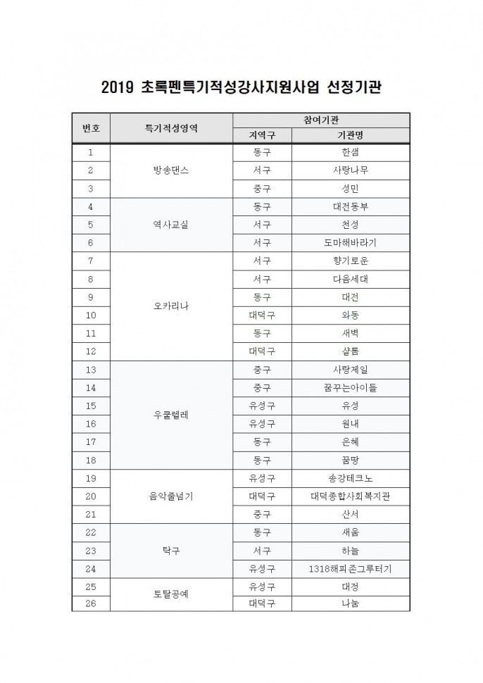 (지역아동센터) 2020 초록펜특기적성강사지원…