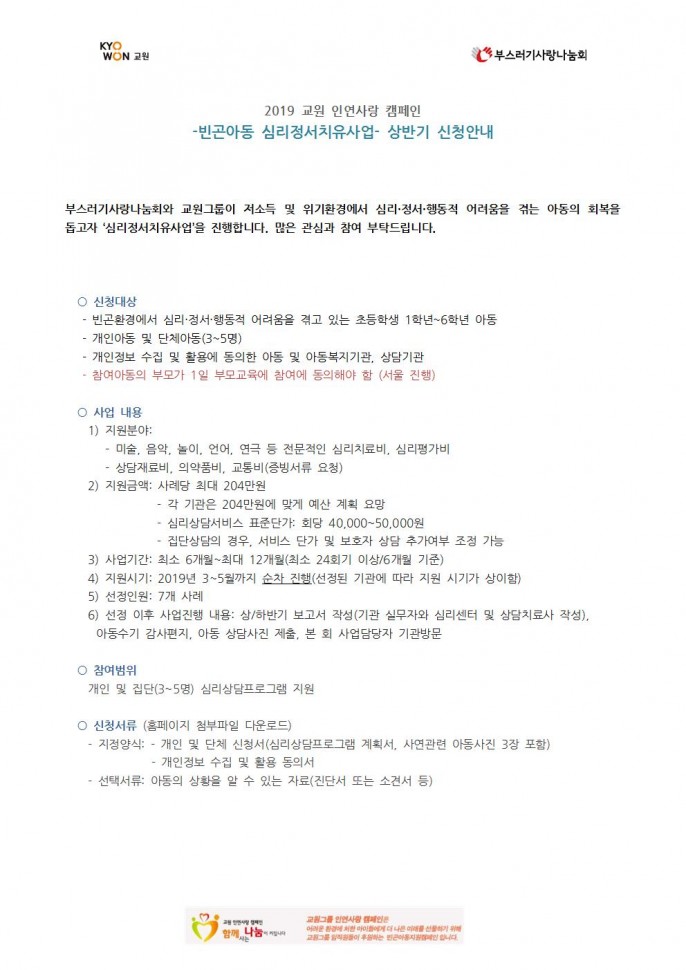 [교원/부스러기사랑나눔회] 빈곤아동…