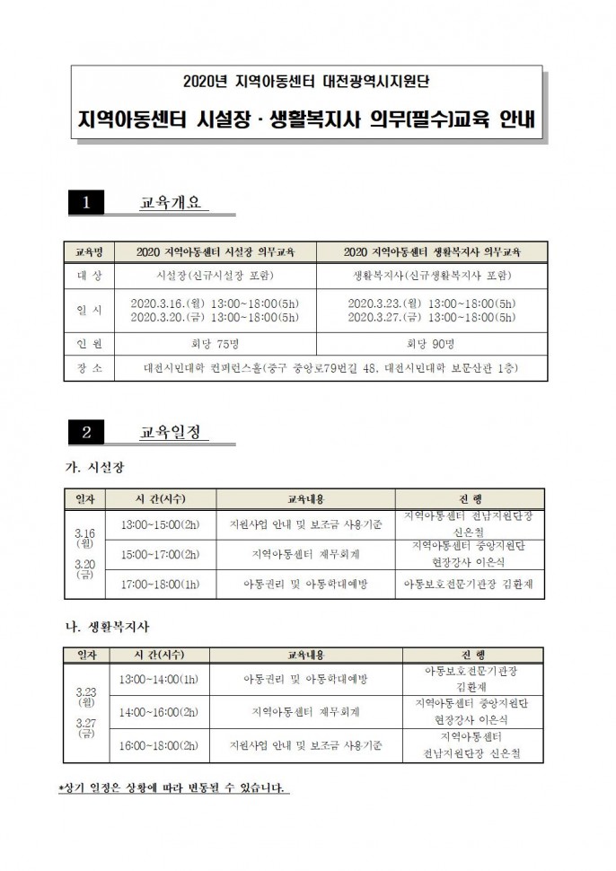 [] 2021 시설장, 생활복지사 필수교육 안내