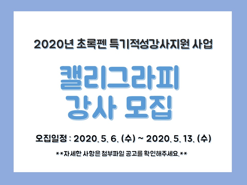 2020년 초록펜 특기적성강사지원 사업…