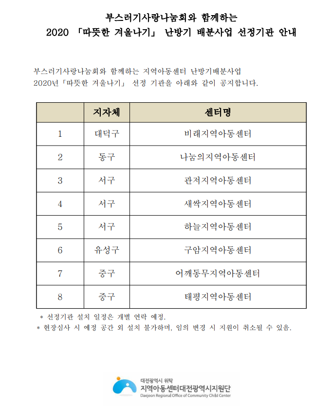 [공지] [선정공지] 부스러기사랑나눔회 따뜻한…