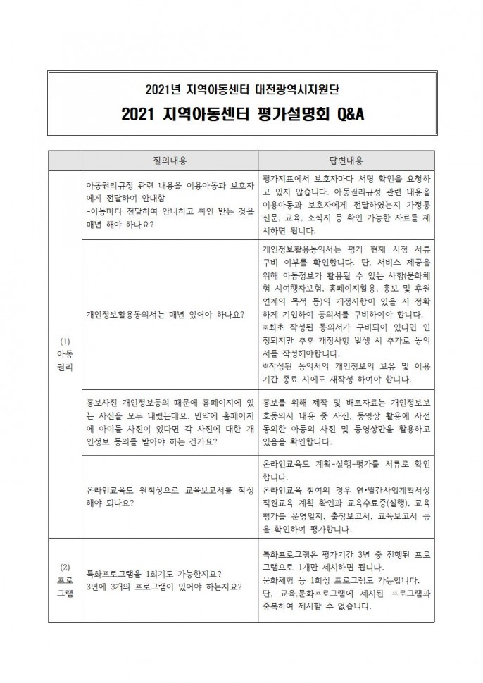 지역아동센터 평가설명회 Q&A
