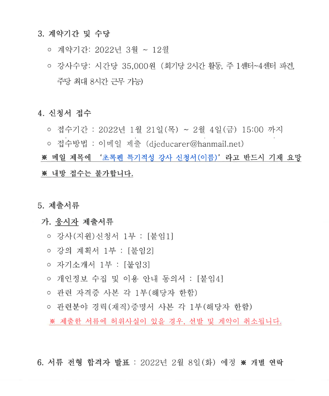 [공지] [채용] 초록펜 특기적성 강사 채용 공고…