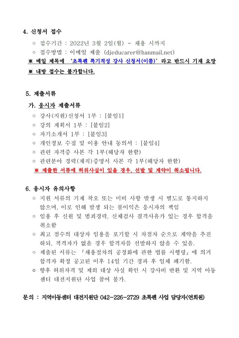 [공지] [채용긴급] 지역아동센터 대전지원단…