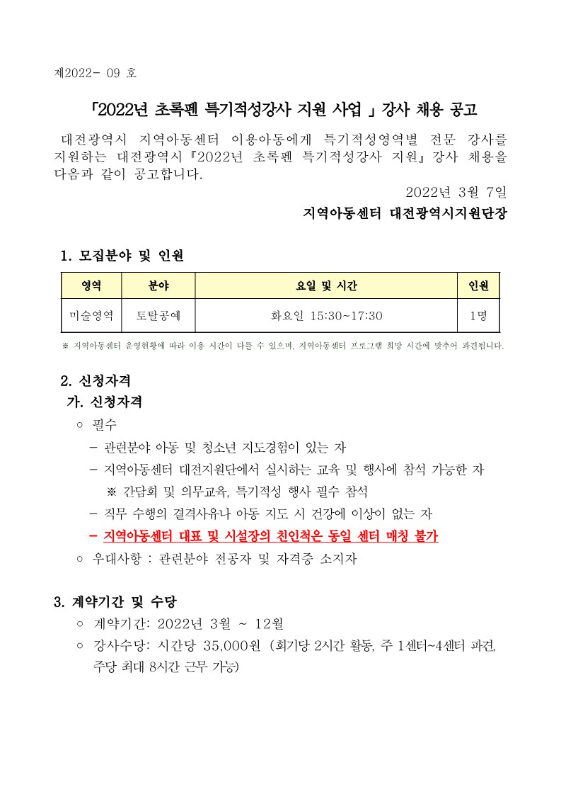 [공지] [채용긴급] 지역아동센터 대전지원단…