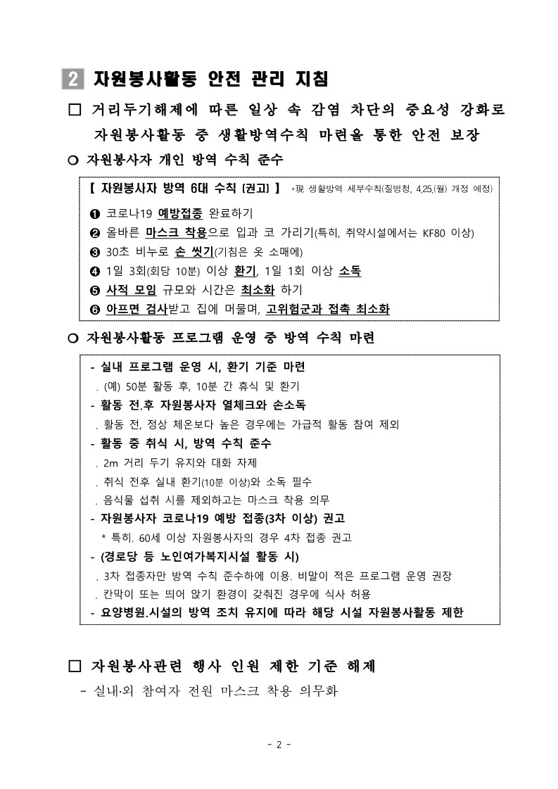 - 자원봉사관련 행사 인원 제한 기준 해제