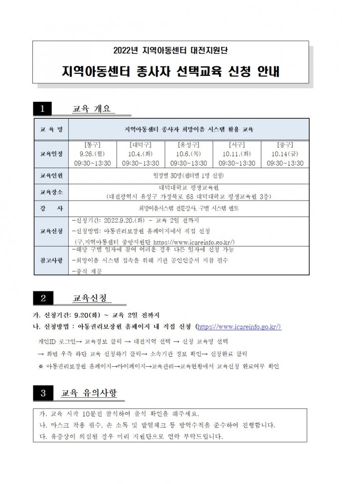 2022년 시설장, 생활복지사 필수교육 신청안내…