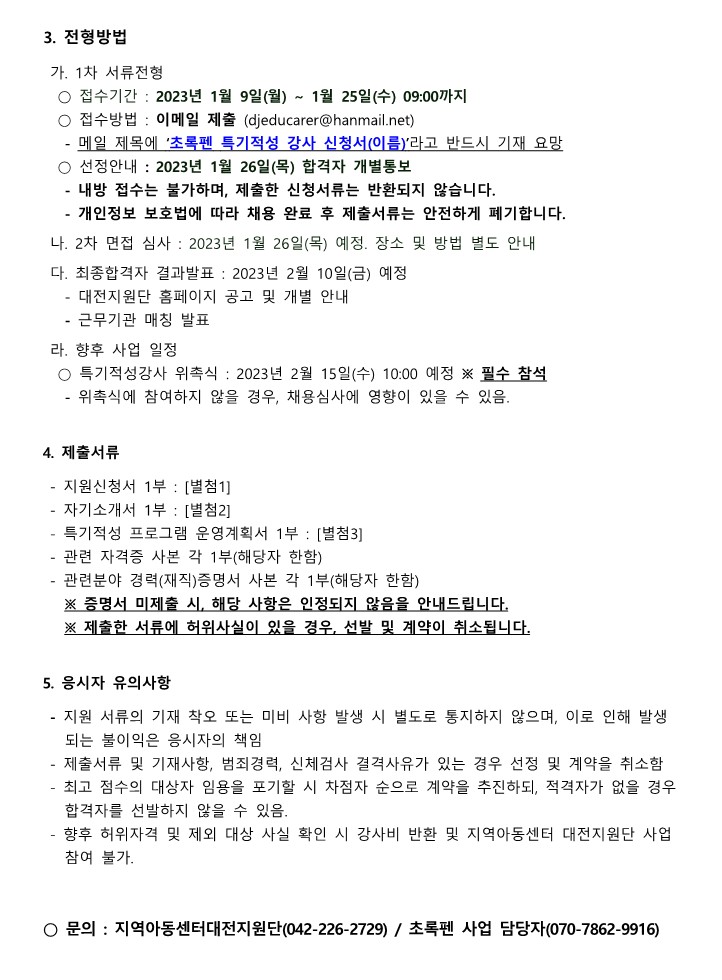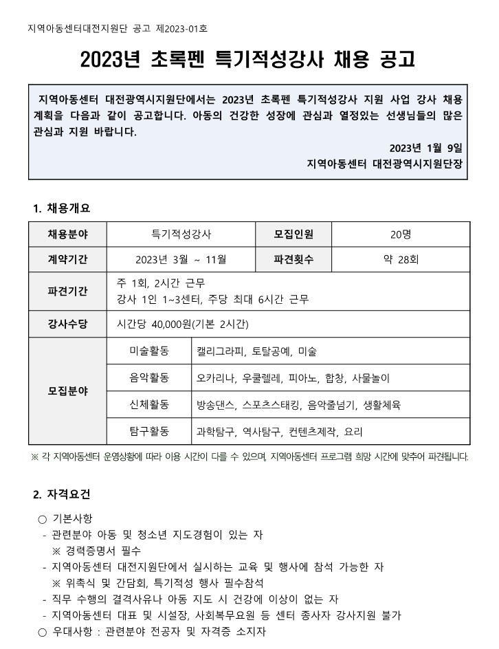 [공지] [공고] 2023년 초록펜 특기적성강사 채용…
