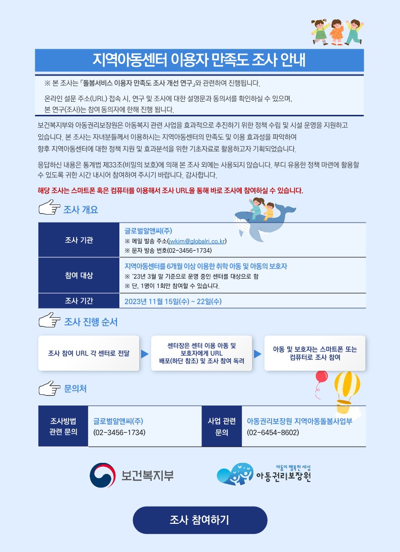 ○ 조사 명: 2023년 지역아동센터 이용자 만족도 조사