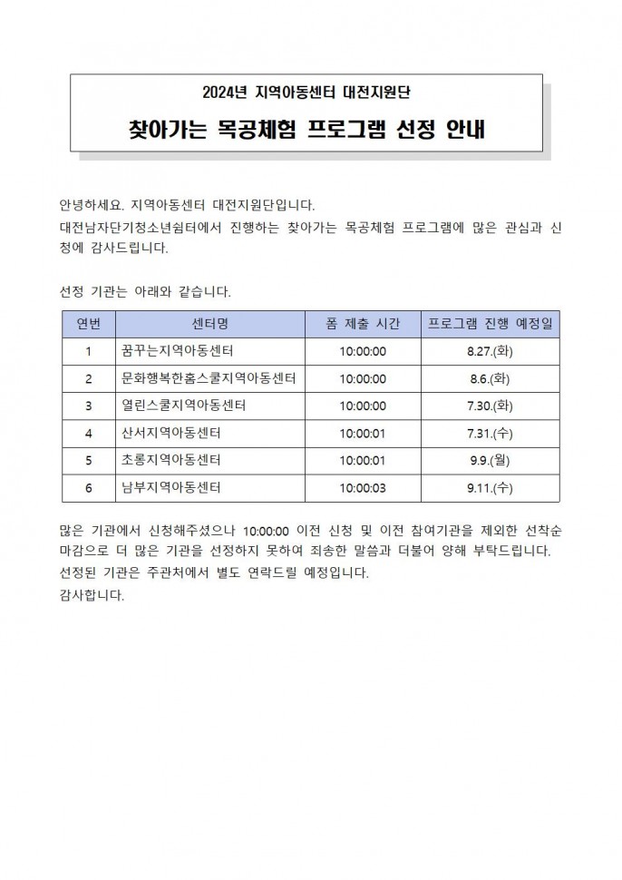 [선정공지] 2024년 찾아가는 목공체험 선정…