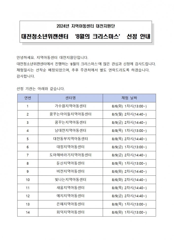 2024년 대전청소년위캔센터 직업체험 프로그램…