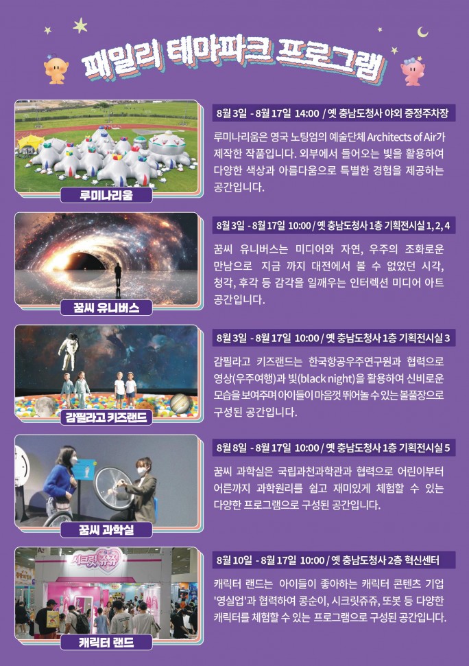 대전문화재단에서 운영하는 패밀리 테마파크를 아래와 같이 안내드립니다.