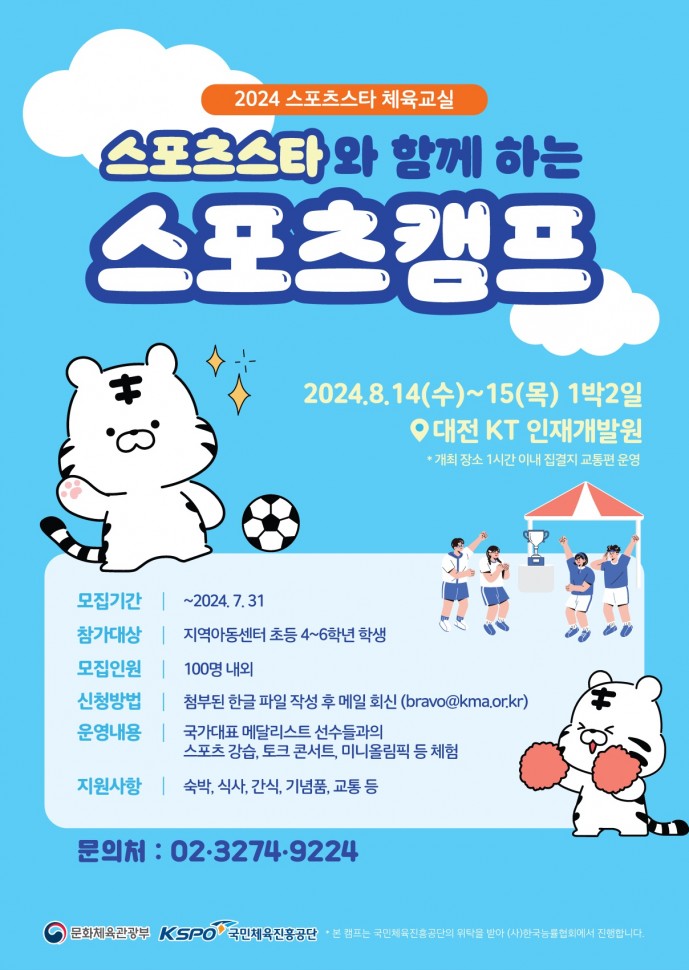 한국능률협회에서 진행하는 2024년 스포츠스타와 함께하는 스포츠캠프를 아래와 같이 안내드립니다.