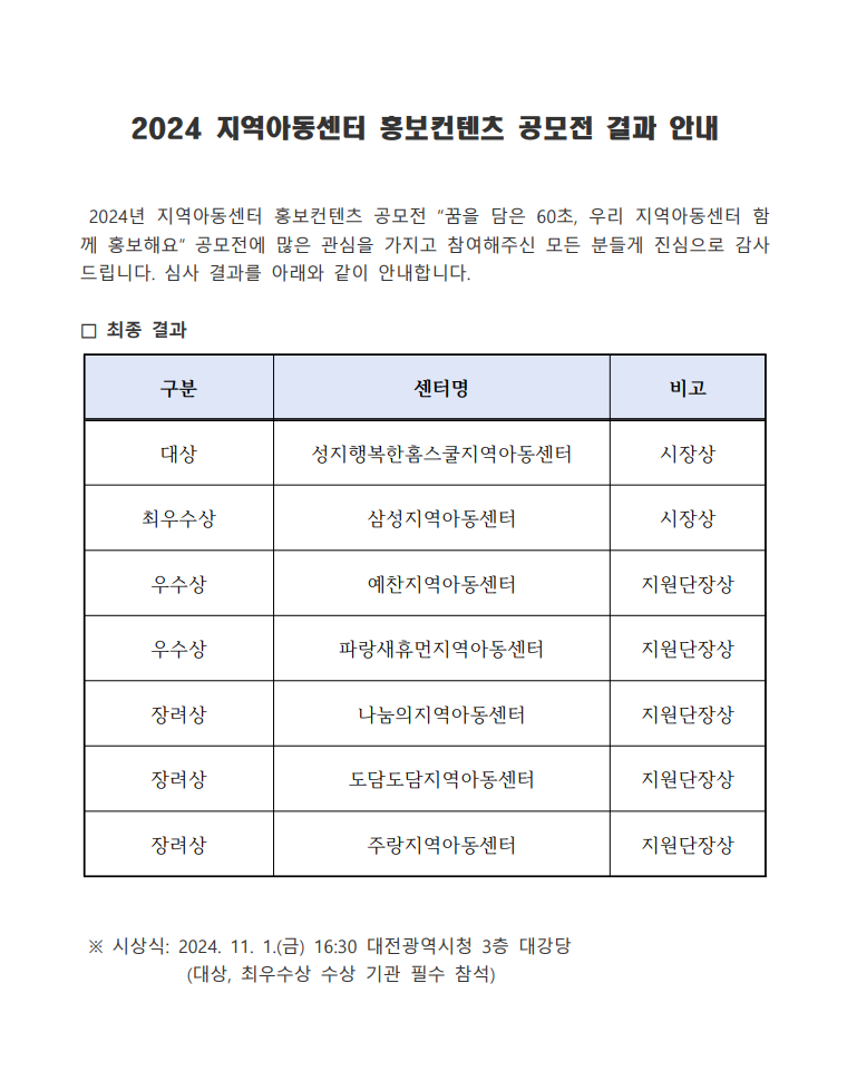2024 지역아동센터 홍보콘텐츠 공모전…
