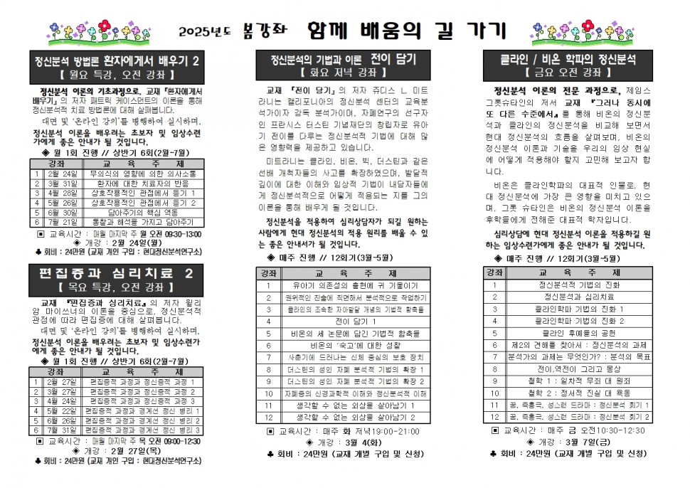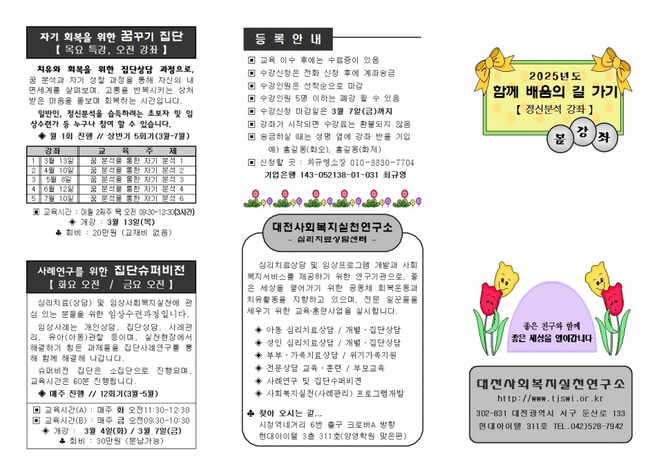 대전사회복지실천연구소 정신분석 강좌 안내