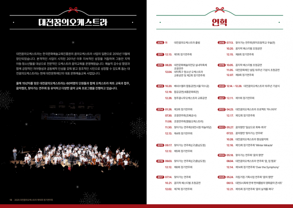 1. 공연명: 2025년 대전꿈의오케스트라 제15회 정기연주회 <꿈의 날개를 펴다>